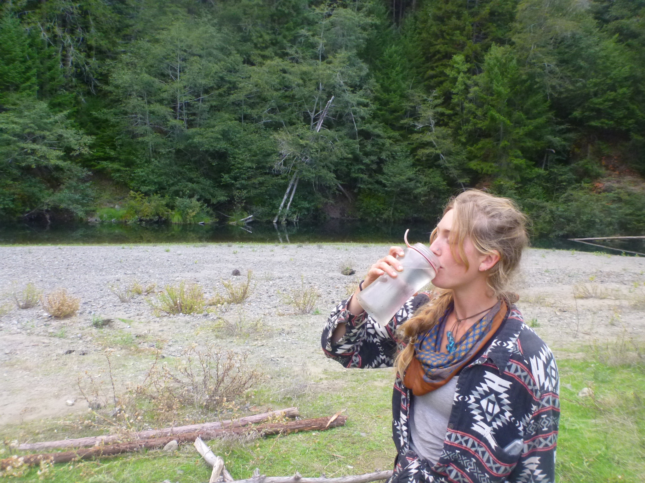 Tonight the mares are tied close to one another from overhead branches and Jesse is on his 30′ tether. It’s a risk, but will make his life much more comfortable if he can cope. Finehorn is getting better with the tether, Vaca Suerte not so much. We let her graze freely this evening, dragging a 6′ rope – she didn’t stray too far from the herd. At least that lets her graze without constant attention (and too frequent tanglings). Tried out our Steripen Adventurer water purifier device for the first time this evening. Very SciFi – a little scary – i understand that the science is sound, but it’s a leap of faith for sure. It’s certainly small and light and easy! Funny to be using Old School collapsible water buckets from Sears to gather water from the river and pour it through the pre-filter into our SolLight water bottle/lanterns – where we stir with our glowing magic wand for 90 seconds to make the river water safe for humans to drink. We both feel burdened by the amount of Stuff we’re toting around. I’m sure the ponies share that sentiment. What can we get rid of and still have what we need?