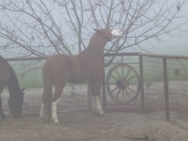At this point we have no intention of calling off the trip, however I am honestly at a loss in terms of where to go from here. We have a rest stop planned in Rosamond, CA – from mid-January through mid-February at Mariah Country Farms, a WWOOFing host farm that makes goat milk soaps (among other things). That’s 4 weeks from now. For the past two weeks I’ve been walking along the road leading Jesse and Cowgirl (who has been steadily carrying the pack) for 5 – 12 miles a day and the blisters on the soles of my feet have broken and reformed repeatedly. For four of those days we’ve been blessed with someone willing to transport our gear in their vehicle and I’ve been able to ride Cowgirl, who has done really well – but that doesn’t help Jesse, who has been gamely keeping up, trudging along because he understands that it’s necessary. It’s hard to see the point in that now that we know he’s not going to improve under these conditions.