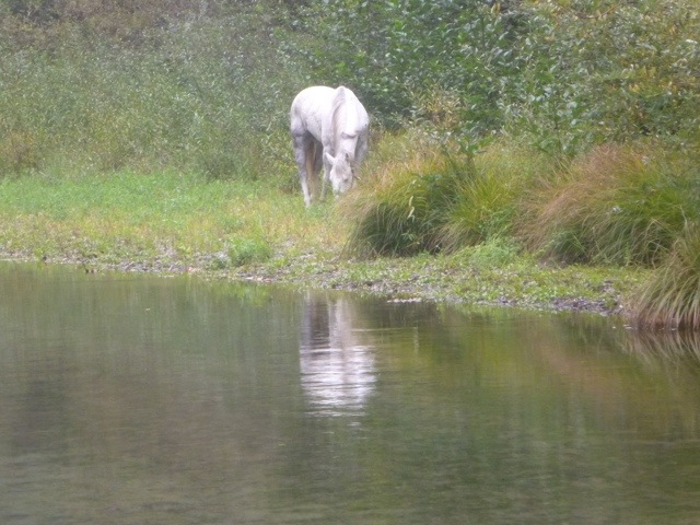 We have left hillbilly hill. We currently sit across the street at the creek, looking up the 100+ feet elevation of Papa Don’s land. The ponies are now tied to trees, standing in the dappled sunlight of golden leaved elms. We spent the morning hauling all the gear across the hills, up and down unreasonably steep sod, and now sit on large rocks waiting for S to arrive with her trailer. We chose the trailer because it is the only way to get out of here in any sort of sane and smart way – cowgirl slipped on steep cement a few days ago and got a pretty good gash on her knee – now 3 out of 4 legs sport wounds – she needs few days rest – and it’s not gonna be on hillbillyhill now that we have been here 10 days. S is being so gracious and taking us, gear and 3 ponies 50 miles down the road to Cowboy Camp- B.L.M. land close to the highway with corral and toilets- what a concept. We’ll get a couple bails of hay from S and rest cowgirl for a few days, and look for a saddle that fits her withers. Its getting cold- freezing at night but no rain yet. Sea scouted via car the route we were going to take on horseback, recommended by the forest service, got 7 miles up and hit snow – 20 miles and still no water!