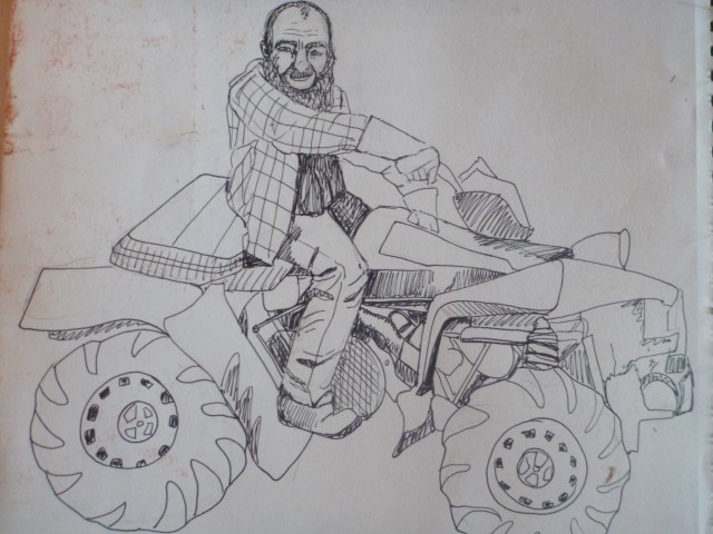 That was when the good shepherd found us. We didn’t know that guardian angels rode ATVs. A funny little man showed up, gnome-like with a grizzly beard, and offered us a rest in his 20 acre cow pasture across the road.
