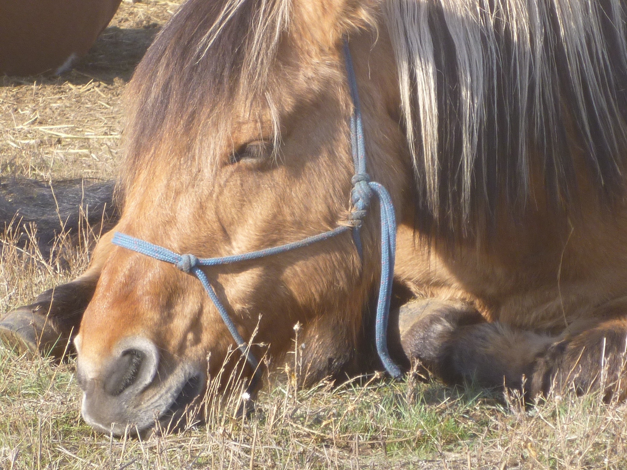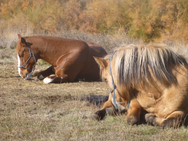 And Jesse was good to ride today. I trust him to understand and take care of things. He will need to lead for a while. Good herd. Jesse, and the one we call Dolarosa, lying down in the dry grass and hay and thistle, the faithful herd, waiting. Our noble beasts lounging on their arses like us and waiting to go somewhere. We call Cowgirl Senora Dolarosa for now, because of her melancholy elegance.