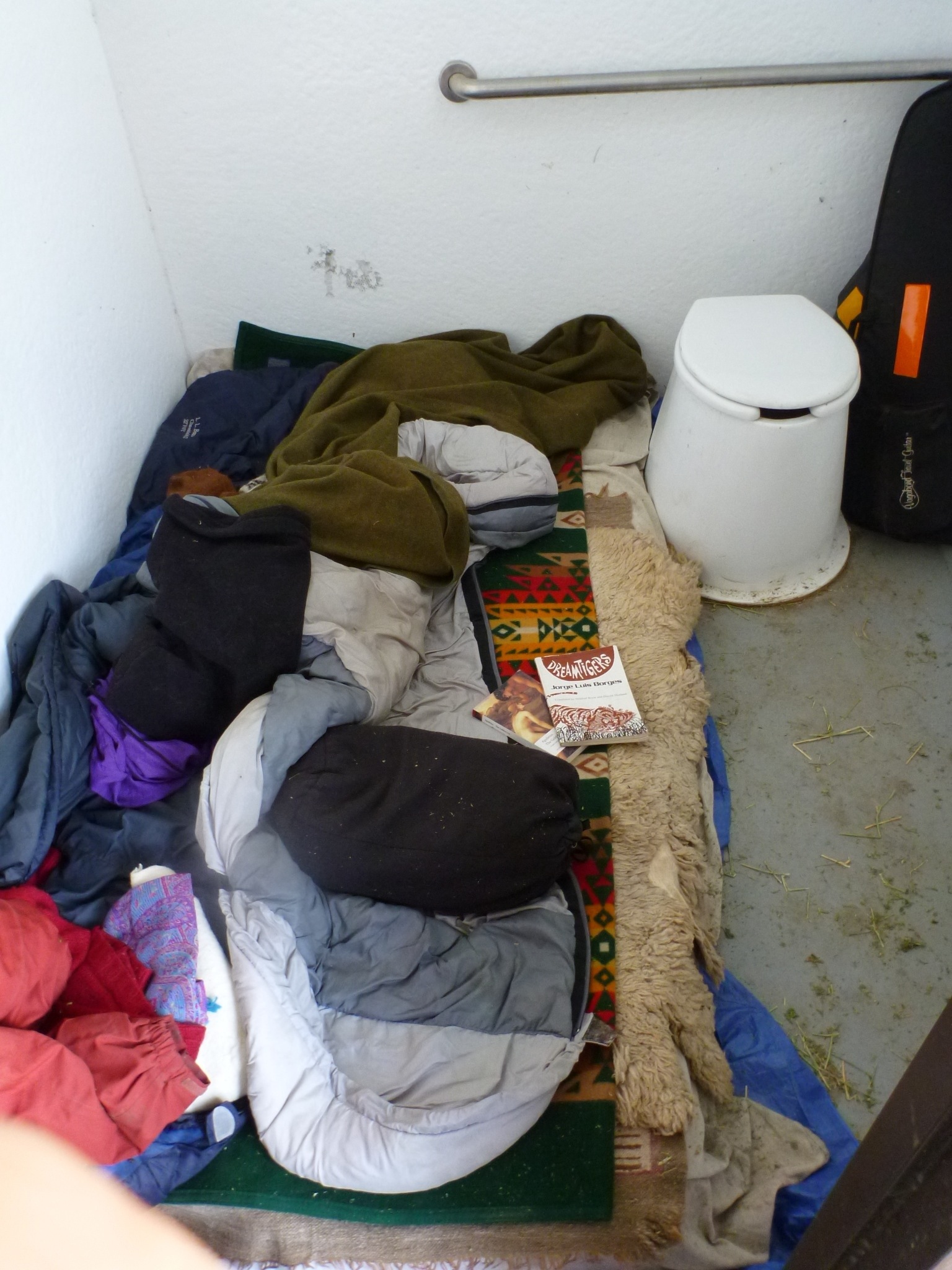 Finehorn stood with frost in her mane, and I had coffee (which is something i do now on the road) and hitchhiked to town – an insane day of car hopping, back to potter valley 60 miles west to retrieve saddle pads, clumsily left in S’s trailer attic. We arrived to Cowboy camp 1 night ago, as it is night now again sitting in the loo.