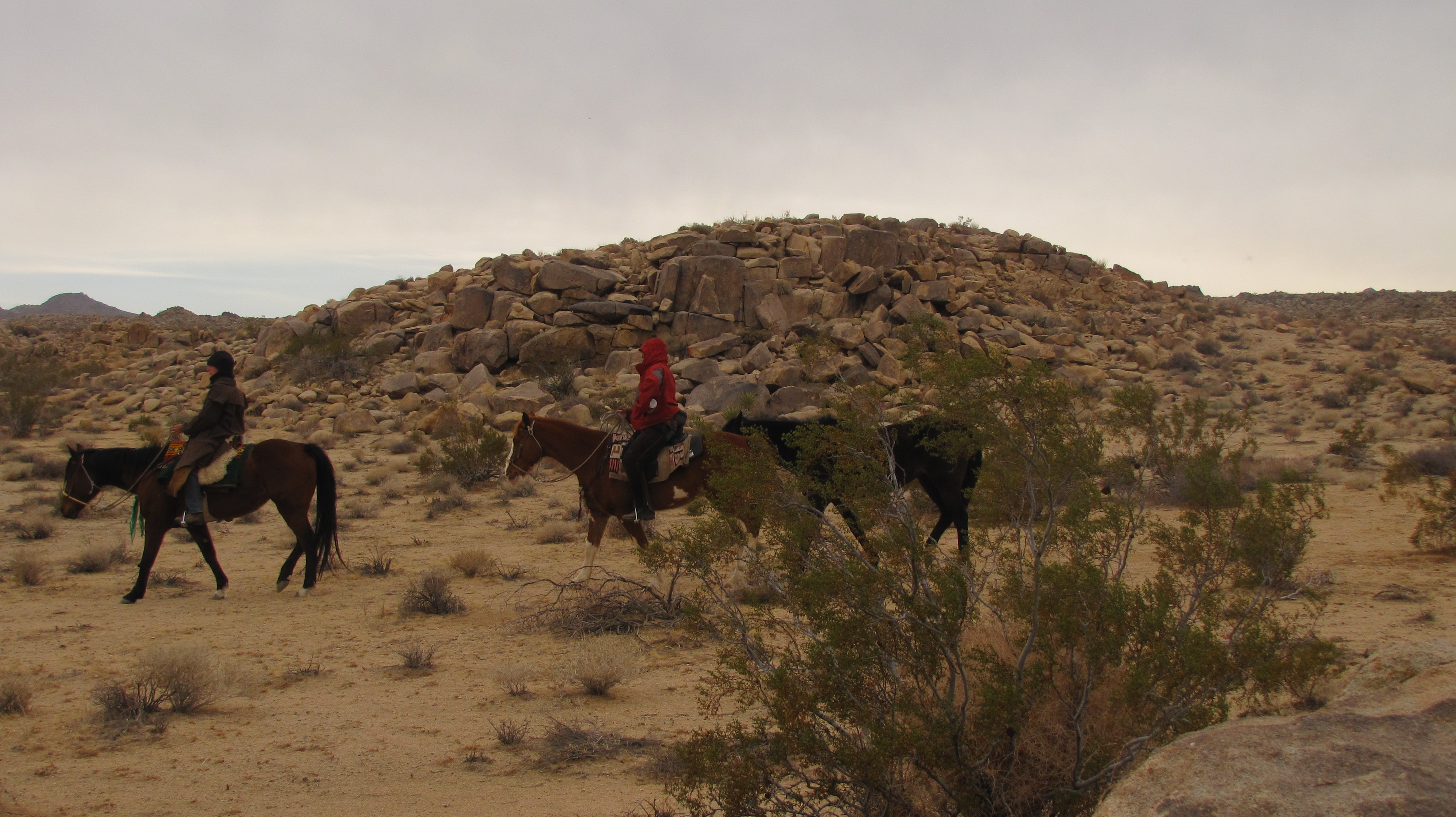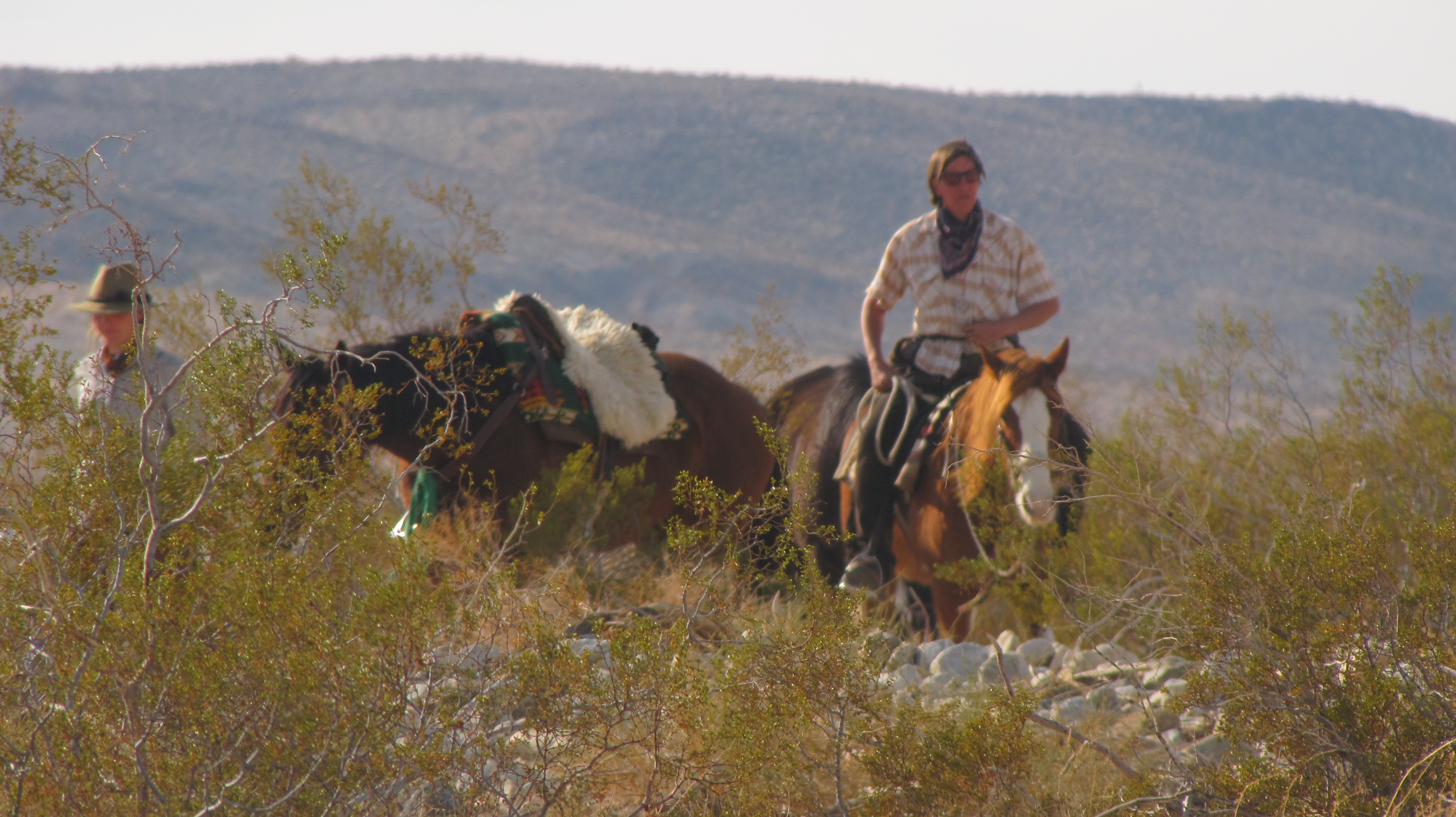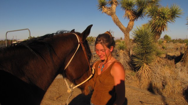 The hardest part of this decision has been the realization that I can’t keep the herd together if I’m going solo. I’ll continue riding Jesse James, Finehorn will continue in her preferred role of stalwart pack pony – and it’s looking like Daisy will be heading up to join my cousin Susie in Redding. But Cowgirl needs to find a new situation. She’s served us well – kept her cool through traffic and barking dogs, freight trains and narrow mountain trails – we’ve ridden her, packed her, ponied off of her, forded rivers and crossed the Mojave. We’re sad to see her go – but we do need to find a new home for her – ASAP. If you’re interested or know someone who might be, please be in touch (contact information is on the “daily update” page). Thank You!
