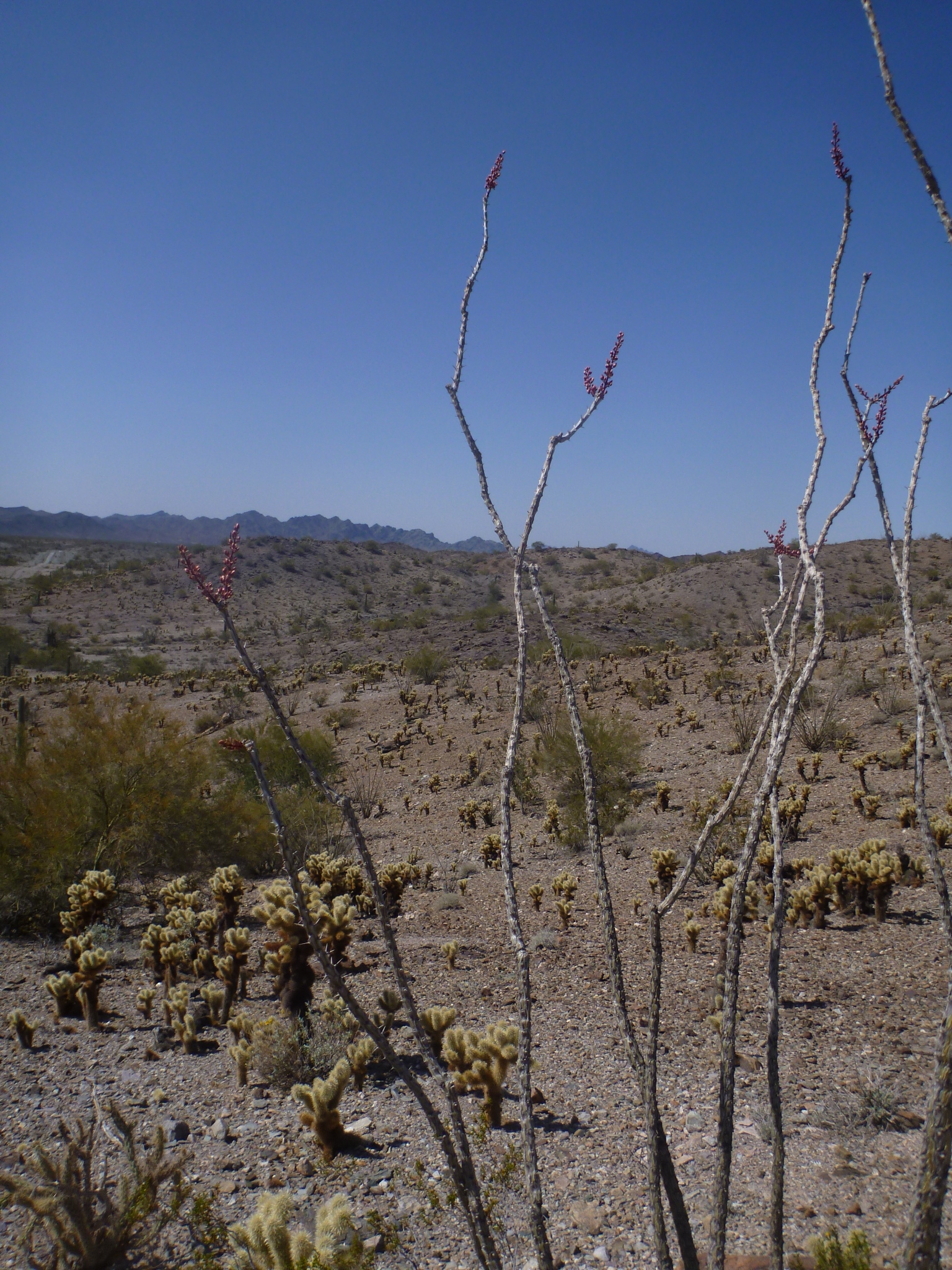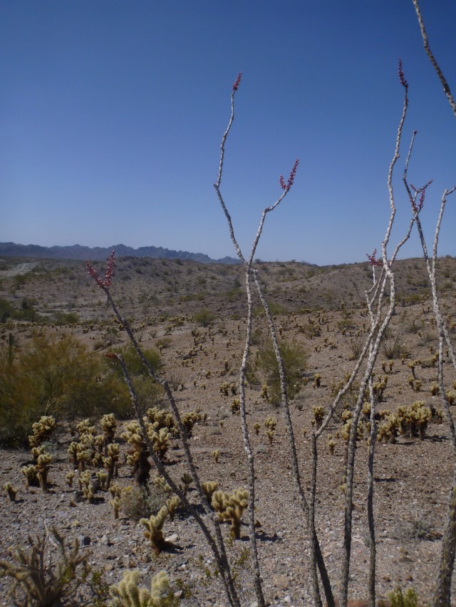 Meanwhile, back on the ranch, the ponies are enjoying their “vacation” and healing slowly but surely, I am in the process of learning to make tempeh (another bucket list item) today and the free range rodeo blog just celebrated 10,000 hits! And going through my photos, I found pictures of another one of my bucket list items – I’ve always wanted to see the Ocotillo cactus in bloom. I’ve also heard them called century plants (which is an exaggerated reference to how seldom they flower) and I’ve missed them by a week or a rainstorm several times – and we rode through them for weeks this trip!