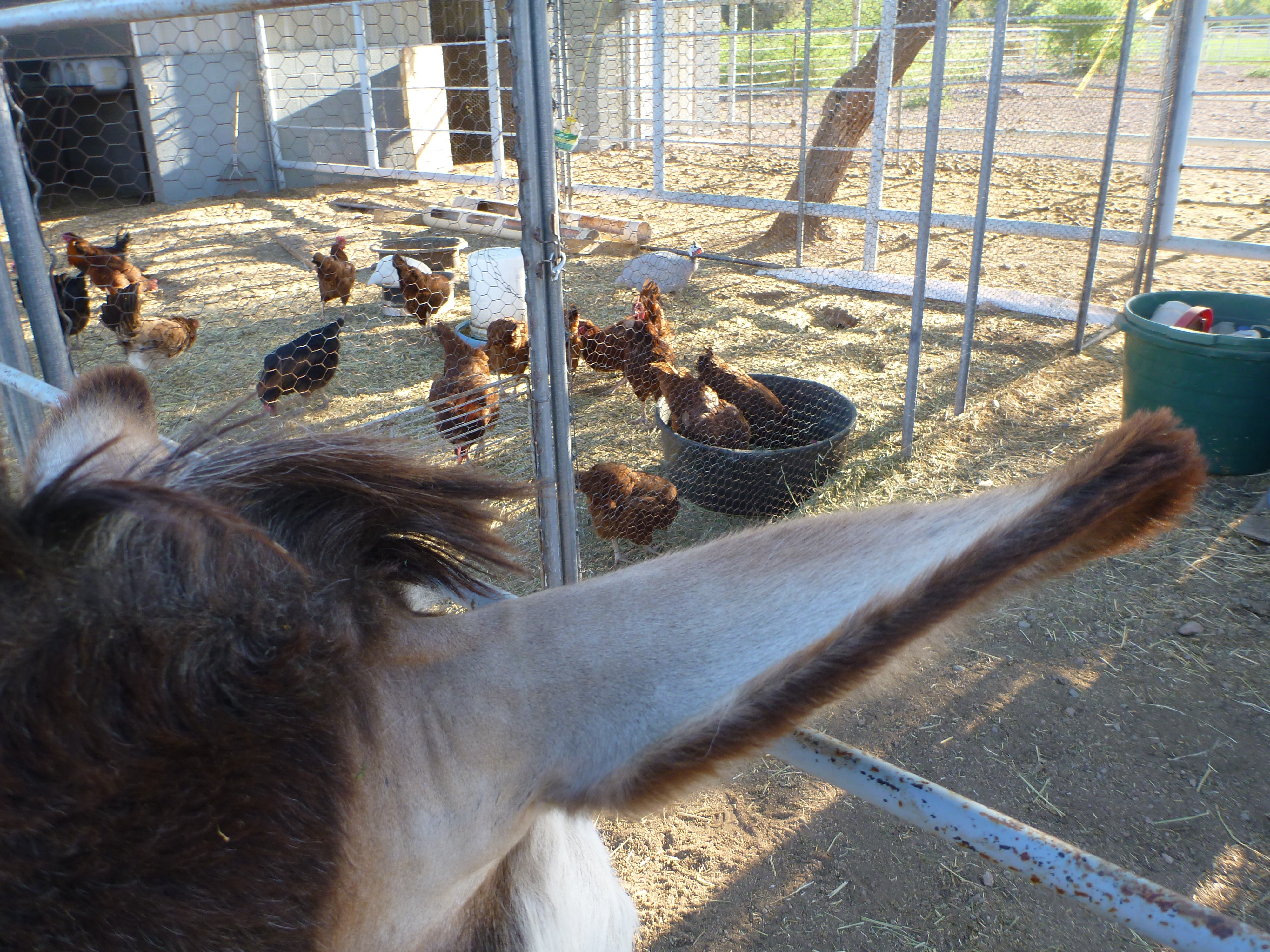 Finehorn had an abscess. It finally burst (thanks to repeated hot compresses with castor oil and epsom salts and garlic) and left a hole. The hole isn’t something you want to look at. It is going to take time to fill in and grow some hair. It’s not infected, she doesn’t need anti-biotics and she’s really good about letting me doctor it and do whatever I need to do. Twice a day I take the hose to it until it’s clean and back to basics – then I use a syringe (without the needle attached) full of hydrogen peroxide to probe around and flush it all out – followed by a syringe with (less) iodine. I can hardly believe how quickly it’s improving!
