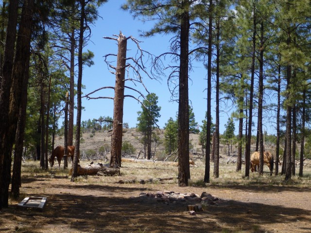 Due to the extreme fire hazard conditions, whole sections of the Apache-Sitgreaves National Forest are currently closed and off-limits.  Tomorrow morning (Monday) I will call the Forest Service in the hope that they can tell me where I Am allowed to travel – and where along that route I’m likely to find water.  My next “destination” is Luna, NM – 100 miles from where I am today.  I was hoping to be there by my birthday on 2.July to pick up a package from my folks and a new solar charging device that some friends in Florida are sending.  Right now I think the likelihood of arriving in Luna “on time” is remote – and I’m not fussed about it.  Even with all the detours and drought, I’m back on the Journey and once again finding it a great Joy.