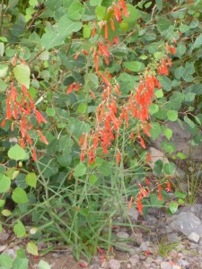 I am sitting on a porch in Alpine, AZ.  Yesterday I attended the 14th annual Worm Races with 3 firemen!  I have so much to write and share – many photos to post – adventures to relate.  Meanwhile it’s past time to pack up the ponies and ride on to Luna, NM – so that I’ll be at the Post Office and General Store tomorrow to pick up my mail (a week late!)  I have no idea if there will be internet access in Luna – I’m really hoping so since I’ve got a day’s worth of catching up to do and then I’m heading into another stretch of wilderness!  This past stretch has been one of the best stages of the Journey thus far – incredible beauty and a deepening bond with the ponies.  Meanwhile – can anybody tell me what this plant is?  There seem to be 3 versions that are similar but not the same…