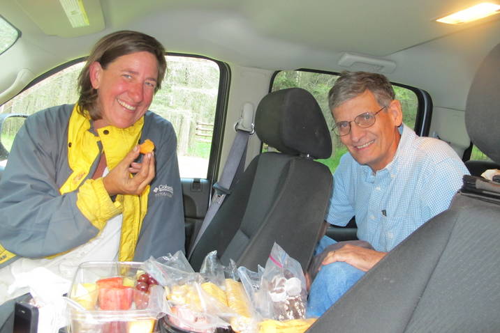 What a great reunion we had…. with much to catch up on.  With a looming rain storm over head, we were very glad to have the extended cab truck to hop into for our picnic.  So, as Fine Horn and Jesse James grazed outside, Sea devoured a tray of fresh fruit we had brought up, some cheese and crackers,  chips, sprite, and best of all, some homemade dark chocolates, given to us by friends.