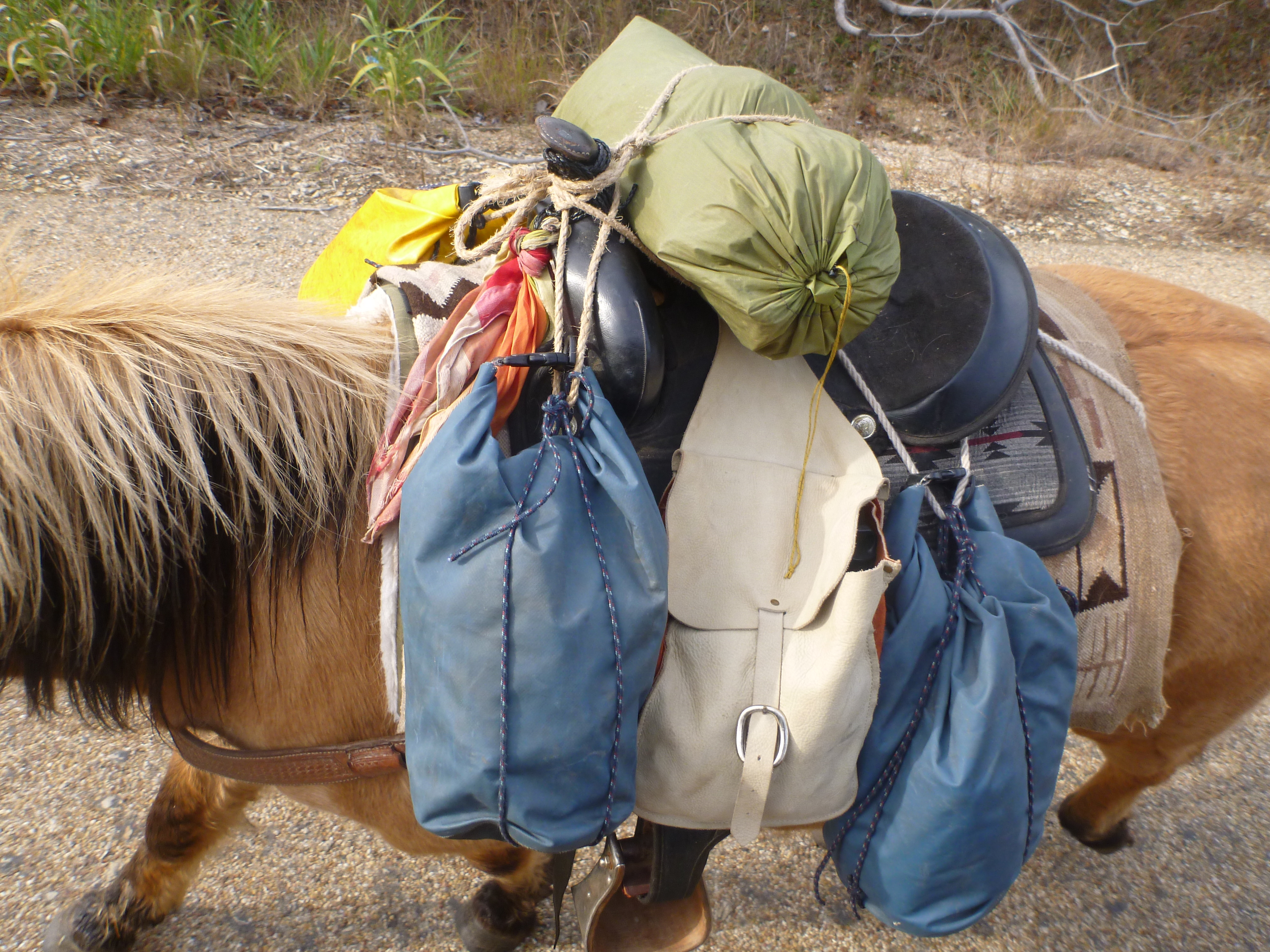 I’ll try and write more soon – and get some photos up.  I’m incredibly grateful that the ponies and I are all in one piece.  I haven’t gone through all the gear yet, but nothing seems to be terribly damaged.  I’m grateful that this accident was just that, an accident.  There were no vehicles on the road and this was nobody’s fault.  I learned later that a man was hunting wild pigs a 1/2 mile up the road and Luna is terrified of pigs, so maybe that has something to do with why she spooked?  Maybe I’ll decide to dismount when we stop to graze in the future, but probably not.  I’m in awe of the way people have reached out to me at this difficult moment in the Journey – especially the Polocrosse crowd I was first introduced to back in Cedar Park and who have done so much to make the past week a good one – caring for the ponies and I like we’re part of their community.  Blessings on your all!