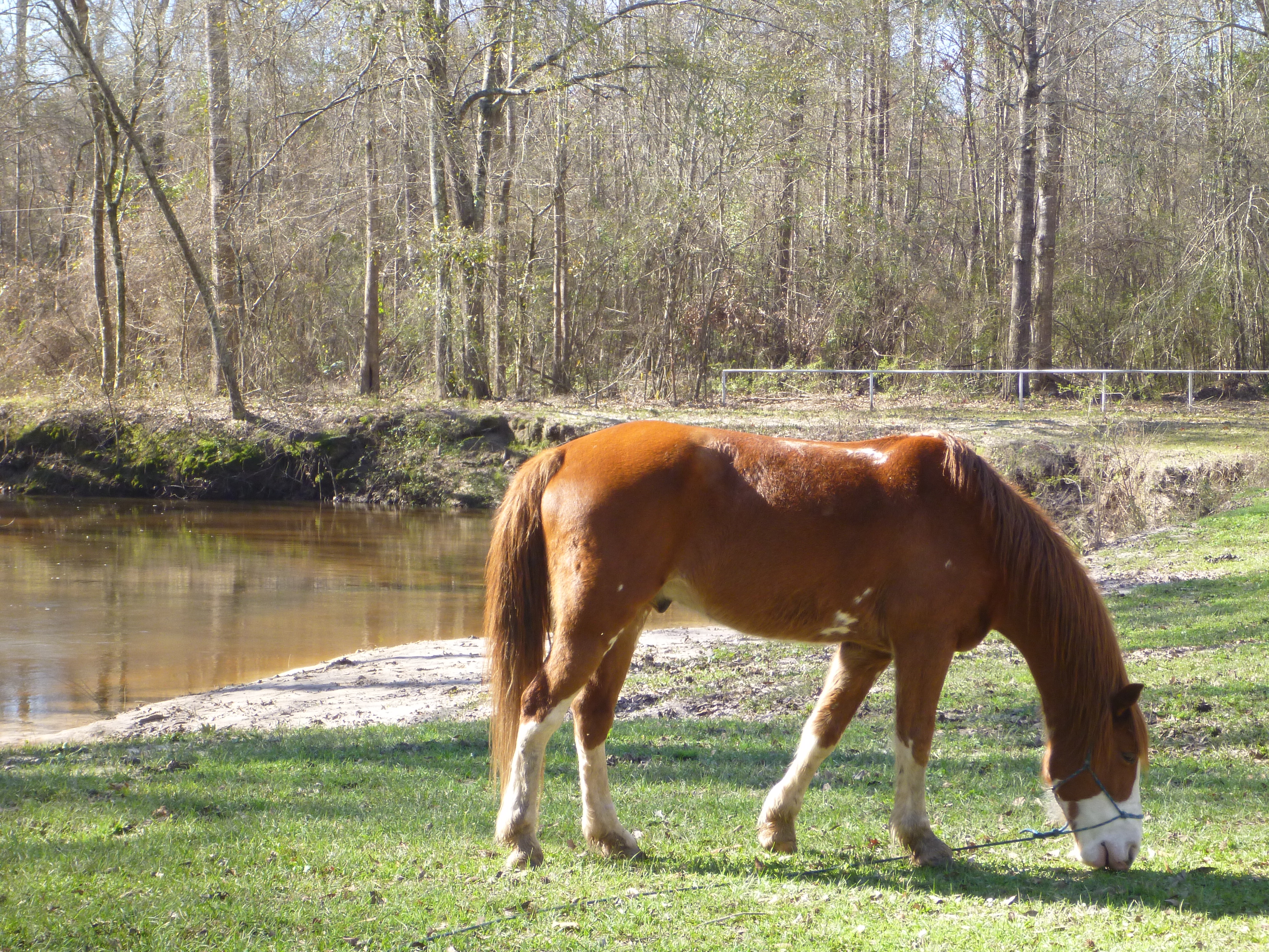 It’s been two weeks since my last blog post – oops! Today I was several paragraphs into a post before I realized that I needed to catch you all up on some recent events in order for what I was writing to make sense! S0 – a brief recap of the highlights of the past two weeks seems in order. Colfax, Lousiana was a wonderful surprise. I camped out at a pavilion in the park and the Rough Riders trail riding group came out with burgers and a campfire. We had a great time swapping stories and hanging out and then at 9:30pm (which I’d mentioned is my current bedtime) everybody miraculously disappeared! Coffee and an egg sandwich arrived in the morning and then I was on my way. Two days later a man from that group came to my rescue when I found myself still riding along a lonely road after dark (and a storm on the way). GC came with a trailer and brought me back 6 miles to a camp in Fishville along the creek where I set up my tent in the dark. Graze for the ponies and an offer of a run to the store for provisions (And a guided tour of the confusing back-road short-cut the next day) were so over the top! I camped for two days, the tent weathered the storm beautifully, I was serenaded by frogs, hoot owls and wolves – what an unexpected treat.