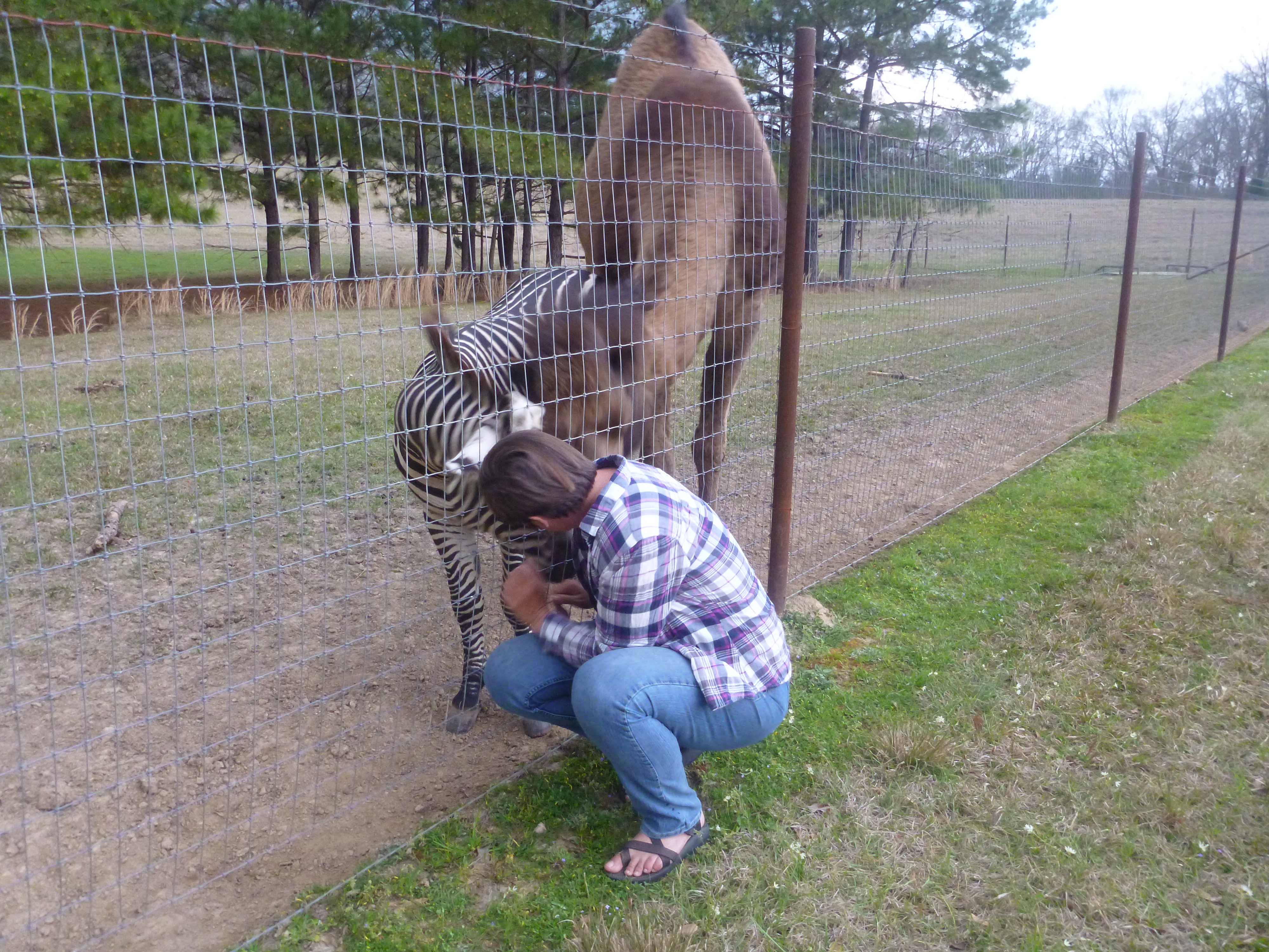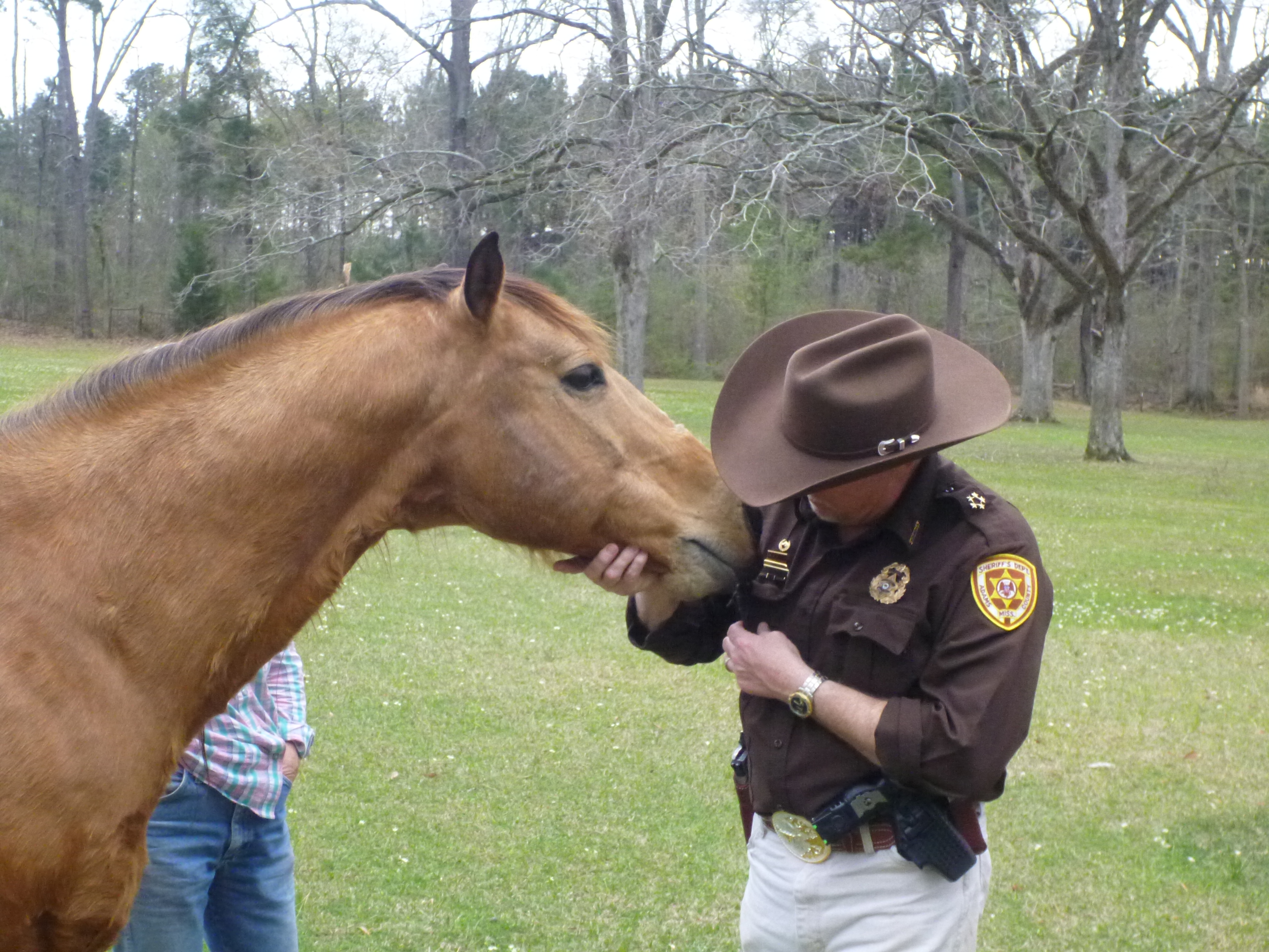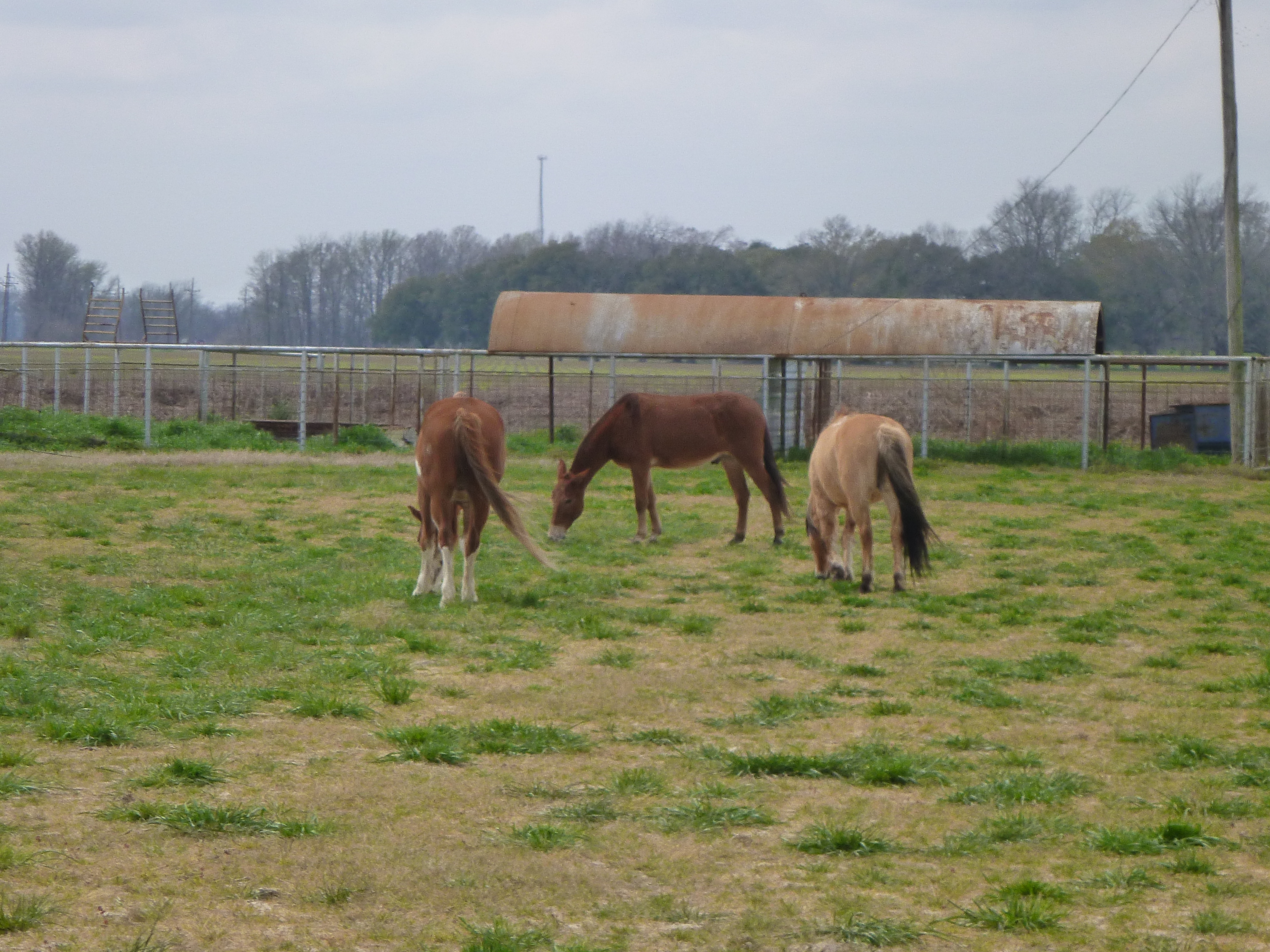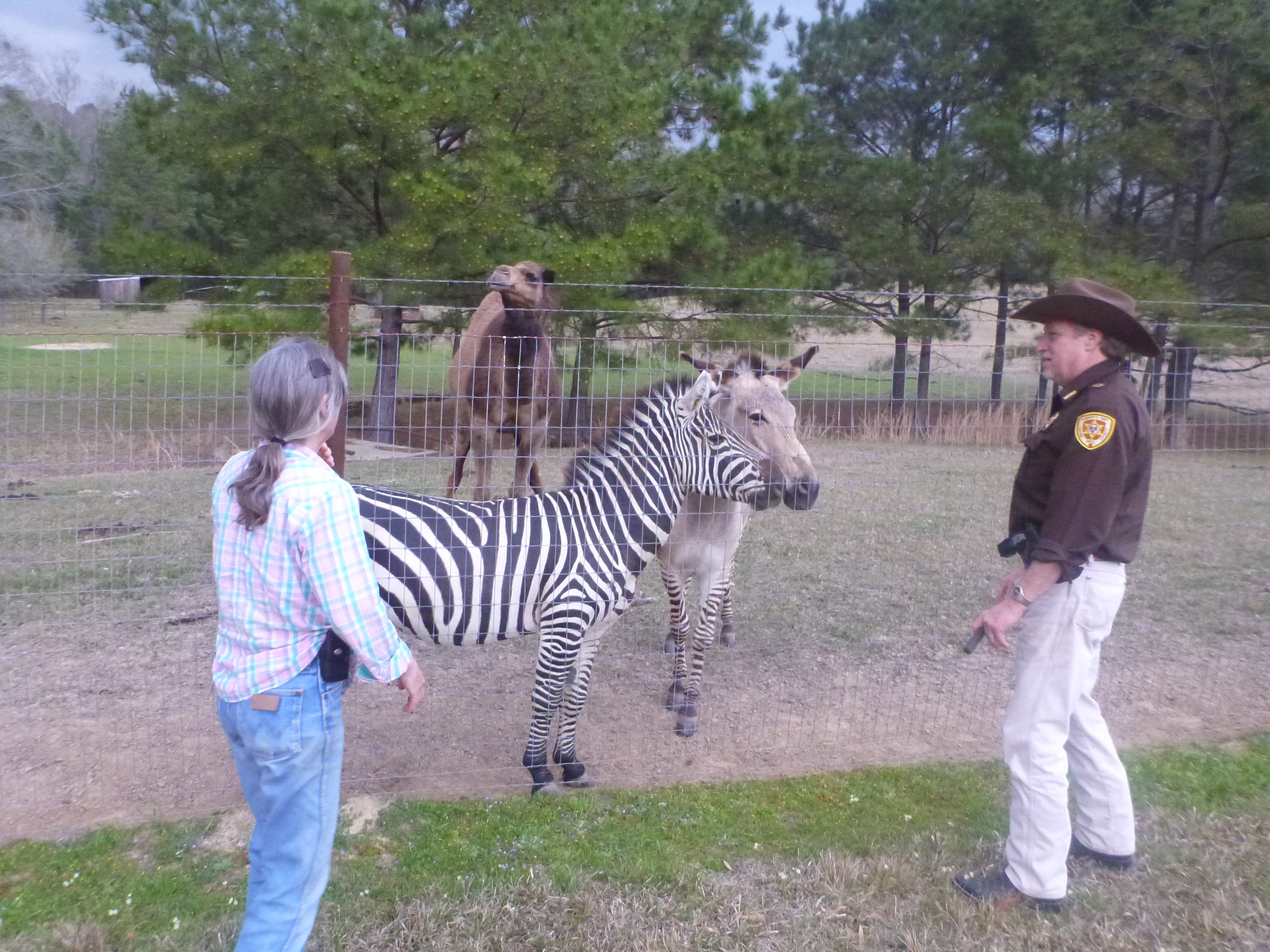 Friday afternoon we got a ride across the Mississippi River from the Natchez, Mississippi Sheriff’s Department. We’d called about arranging an escort and they said that the bridge was too dangerous and they’d feel better bringing us across in a trailer. The welcome didn’t stop there however. The herd have had three days rest in a beautiful pasture at the old stockyards and accommodations were arranged for the humans at the Shantybellum – a funky sweet little cottage half a block from the river and super comfortable and fun. Saturday I was treated to a private tour of some of the classic antebellum mansions around town and this afternoon we not only got to meet the Sheriff’s Keiger Mustang, we also had an opportunity to get up close and personal with two lemurs, a camel, a zebra and a zedonk! If you’ve never heard a happy camel, there’s a brief video up on facebook! Natchez is a wonderful place and it’s been a real treat to be shown around and get to know it a little bit. This is the weekend of the Pilgrimage, the busiest weekend of the year, organized by the two garden clubs and featuring the history and beauty of the city. What a perfect time to ride through town! So one more huge thank you – this one to the City of Natchez, Mississippi – and especially the Sheriff and his incredible team!