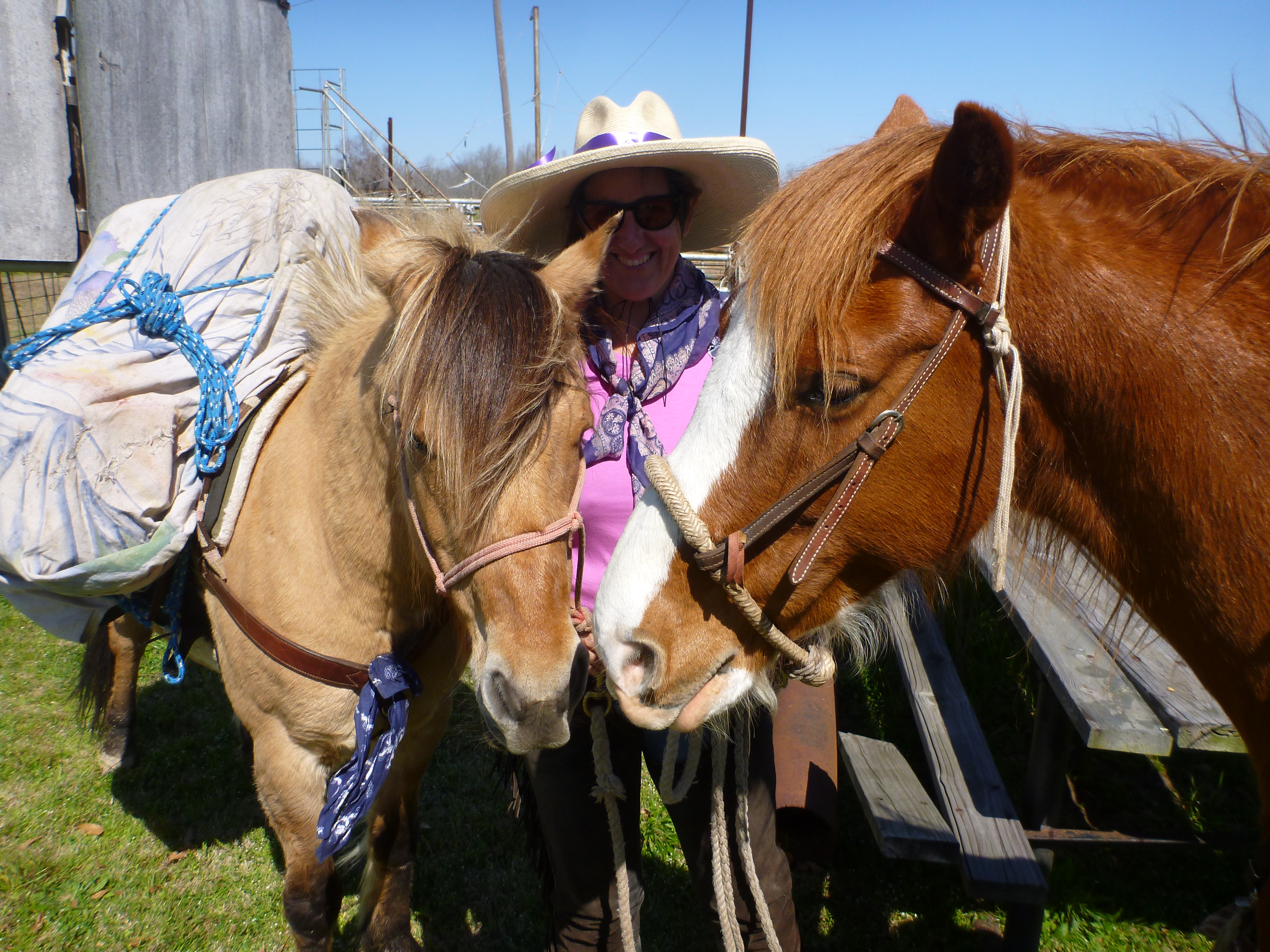 Towards the end of February it was becoming obvious that the ponies and I were all feeling the effects of 16+ months on the trail. Energy and enthusiasm were waning. Our joints were getting stiff and the ponies’ coats and eyes were starting to look dull (mine too probably, but I don’t think anybody was looking). The ponies were loving the good green grass that was growing in abundance, often refusing hay when it was offered, but they were losing weight because the grass was so full of water that they simply couldn’t eat enough of it to get the calories they needed. I’m getting plenty of calories, but it’s hard to get the fresh fruits and veggies my body needs while on the road. I knew we all needed vitamins but figuring out what we needed and where to get it seemed beyond me. I mentioned this to a friend in Oregon and she said that there was a great company just down the road from her that made horse vitamins and she’d see what they recommended. Well, they went a lot further than that! They offered to provide vitamins for the ponies, 5# at a time, for the duration of the Journey! The area I’m in right now is naturally low in selenium, which means that they can’t get enough of it by eating the local grass and hay. The new supplement provides that along with a bunch of other good stuff and over the past two weeks I’ve been seeing a steady improvement, including a quicker pace and a better attitude. A huge thank you to Animal Health Solutions! www.animalhealthsolutionsinc.com