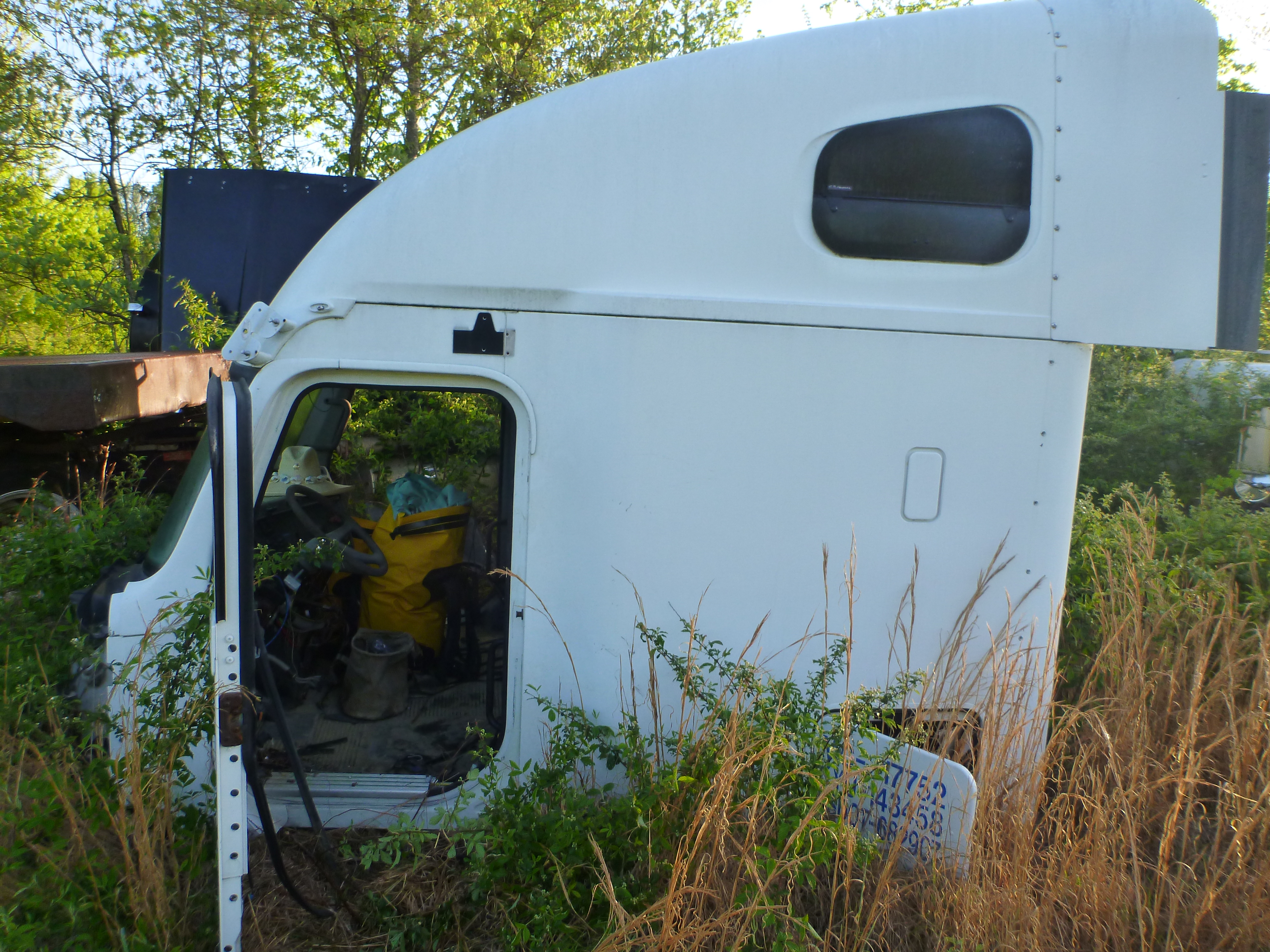 There are moments Strange and Apocalyptic on this Journey, when I look around and wonder where I am and how I’ve gotten here and What is Really Going On!?  I woke up this morning in the cab of a derelict semi, resting at ground level with blackberry brambles coming in the doors, at the edge of a lovely green pasture devoid of horses.  Suddenly I was very awake!  Last night I’d been in the middle of making dinner when they decided to go walkabout.  I think they suddenly realized that we hadn’t come through any gates on the way in.  (Little did they know that the sneaky humans went back later and closed several big gates.)  When I went to the machine shop to do my dishes I found them standing by the gate looking a little flummoxed and I led them back to the grassy pasture.