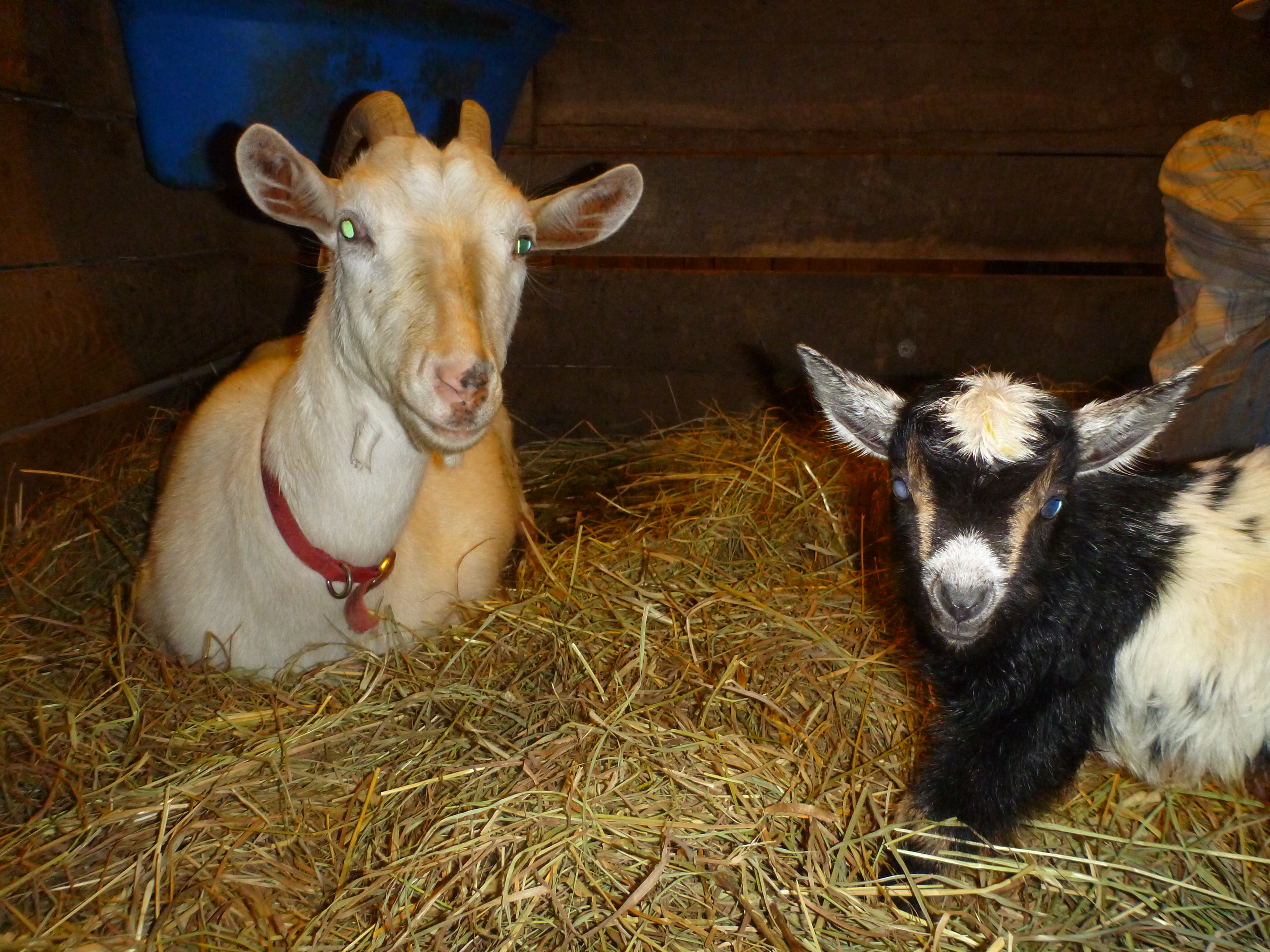 And then there was the arrival of Agatha – Munchkin’s first kid and a beauty at 5#.  She’s 1/4 Saanen and 3/4 Nigerian and within an hour of her birth was not only nursing but bouncing around playing – trying to get her legs figured out in the deep straw.  Too cute.