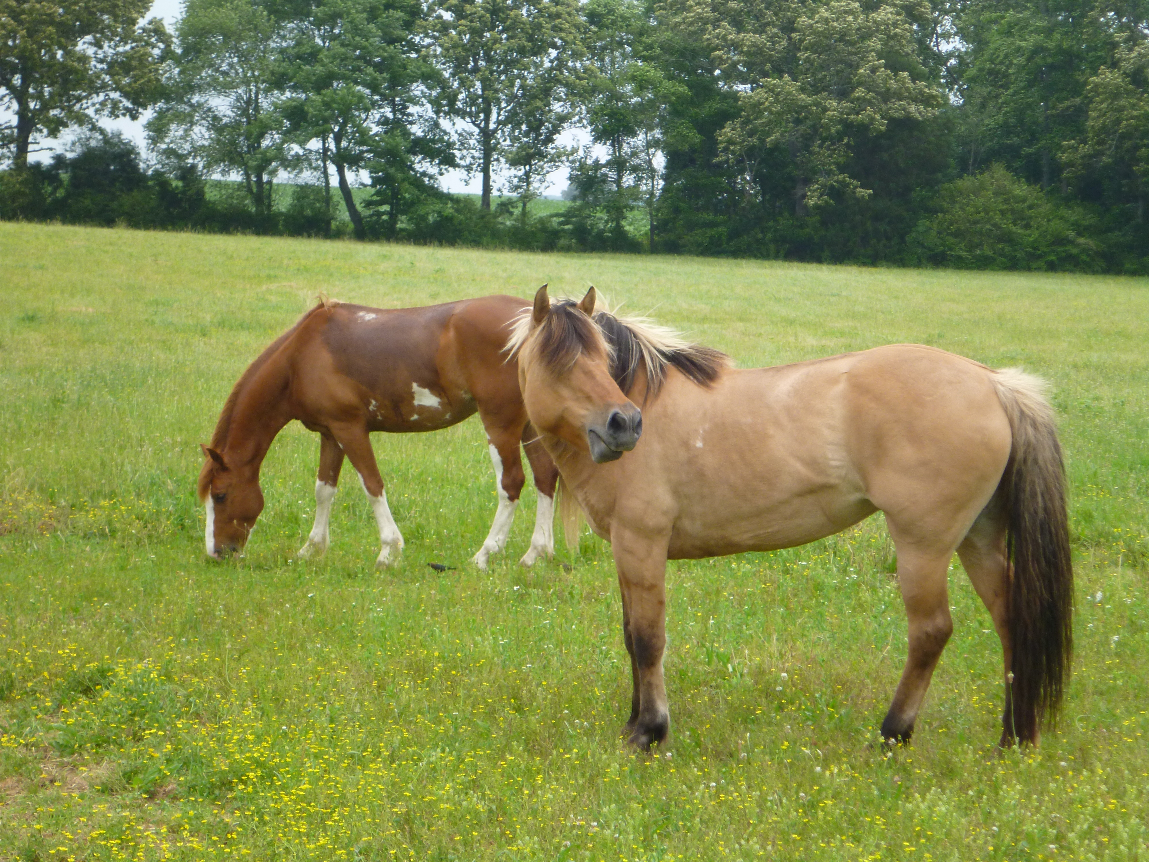 Jesse James still has one pink spot the size of a quarter on the left side of his back.  It has two small (size of a pencil eraser print) areas that were oozing a tiny bit until Tuesday when I switched over from Corona to Furazone Ointment.  The rest of his back looks good and his hair has grown back and he doesn’t complain any more than usual about being groomed.  He felt strong and willing under me today and glad to be out doing something.  I’ve dropped a stone (that’s 14 pounds) in the past two months and reduced Finehorn’s pack weight by about the same amount.  In an ideal world we’d probably wait another two weeks before heading out again but it’s getting hotter here every day, Maine isn’t getting any closer and frankly, funds are running a bit low.  It’s been my experience that it costs more to stay still than it does to keep moving.  The Journey, much to my amazement and deep gratitude, seems to be strangely self-sustaining as long as the ponies and I keep moving.  It’s become a life changing point of faith for me that everything I’ve needed has been provided exactly as I’ve needed it.  At this point I’m down to $75 plus 6 days of food.  There have been tighter moments in the past 20 months, but it’s definitely time to get back on the road!