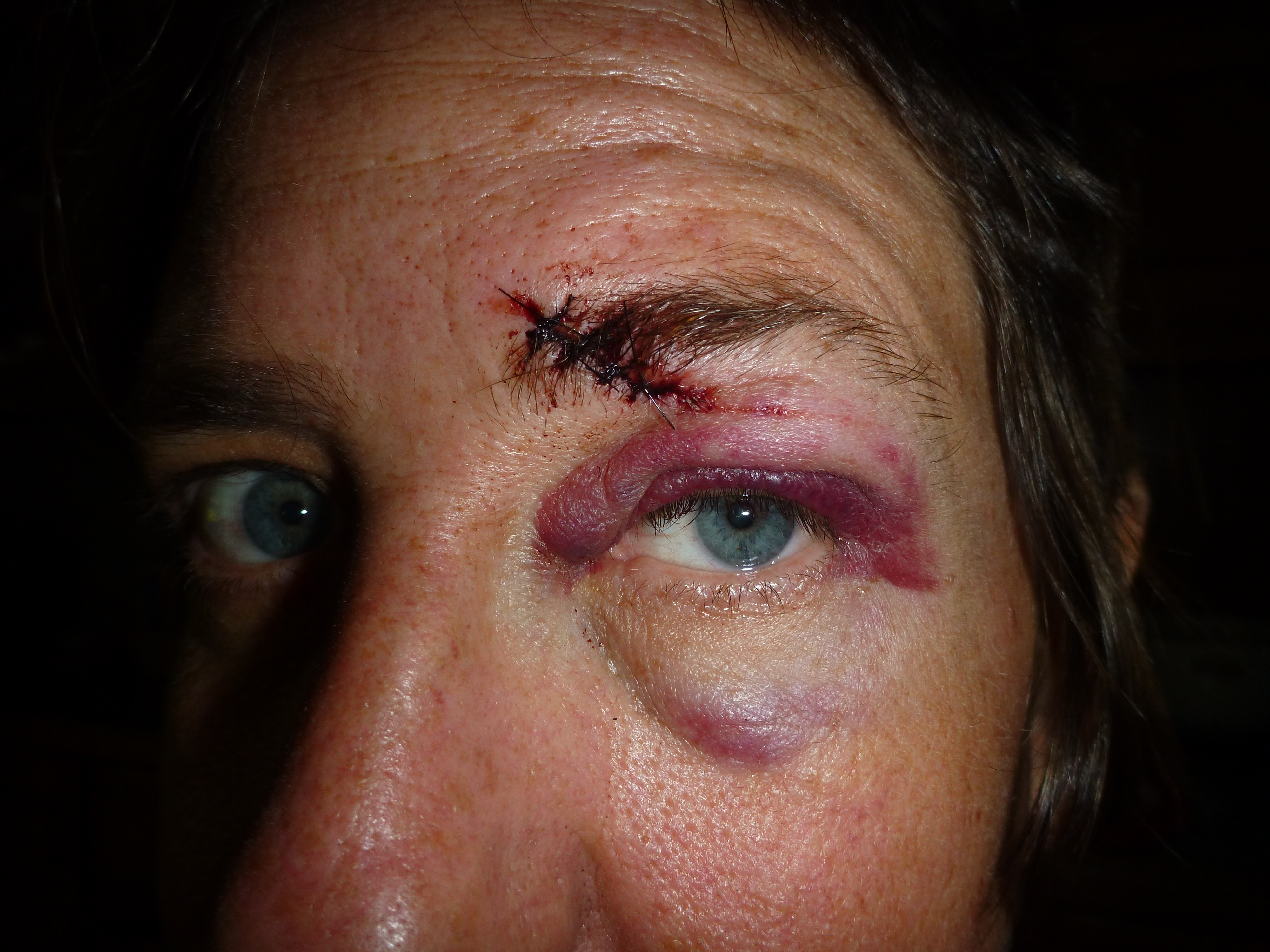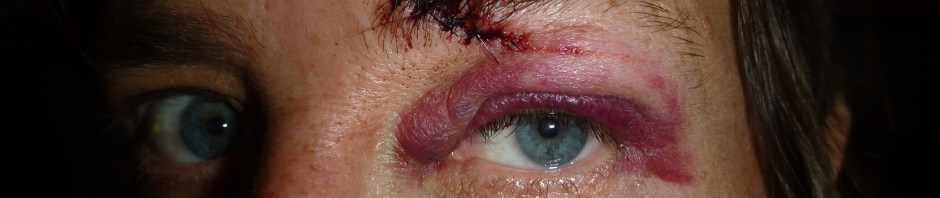 Just when I get a nice tidy blog post about appearances and perceptions coming together in my brain I wind up with a surprise 4 stitches in my eyebrow and the whole thing gets scrambled up again.  Any last vestiges of getting by on my good looks got shot right out of the water last night when I tripped on a piece of farm equipment in the dark.  I don’t recall ever having a black eye before and frankly, I look a bit scary right at the moment.