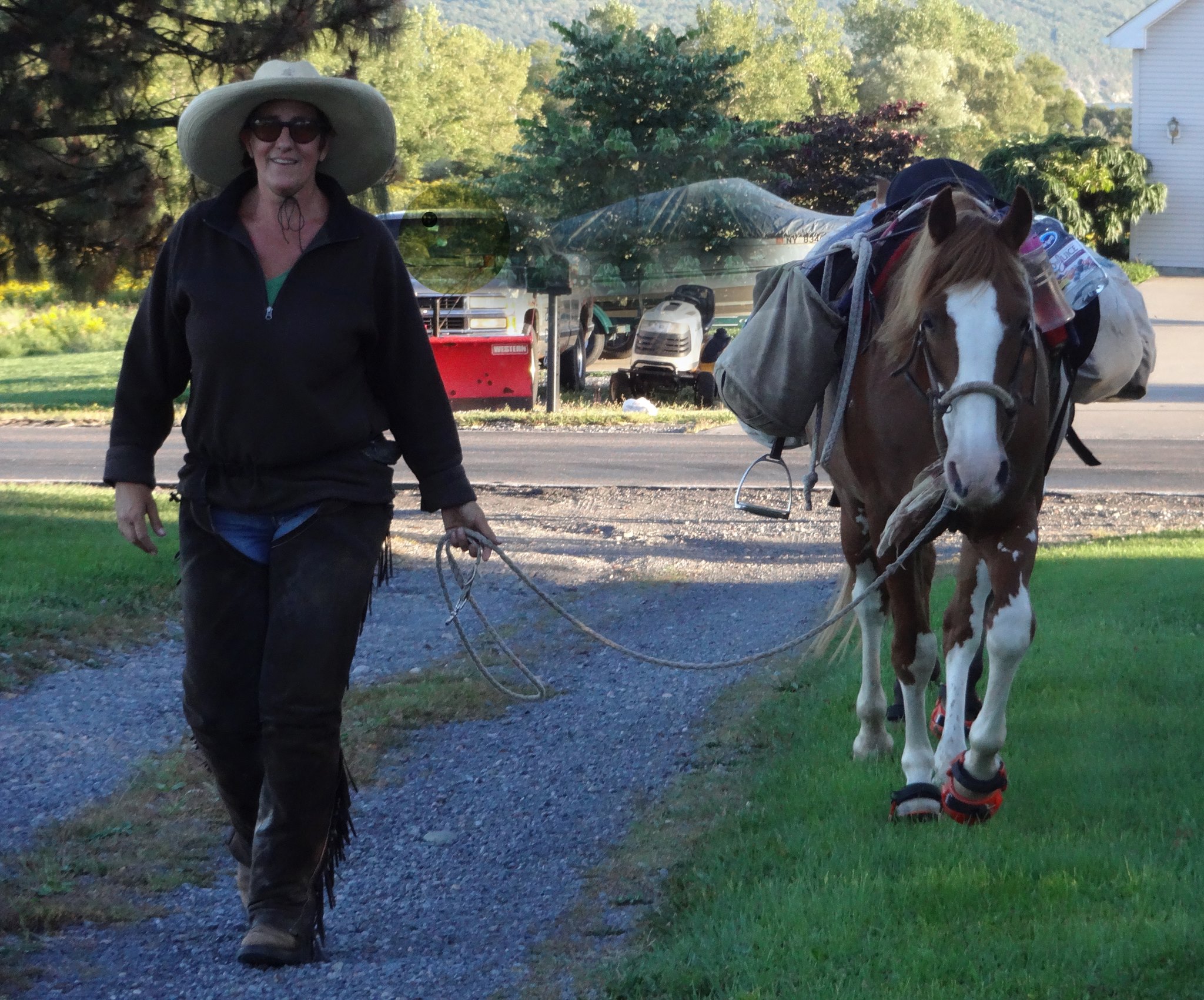 Yes, I’m still using the Renegade Hoof Boots.  I tried the EZ boot gloves pre-trip and they didn’t work for Jesse and I at all!  I had them fitted by a professional barefoot trimmer and EZ boot rep, so that wasn’t the problem.  They were difficult to put on, then they didn’t stay on well (even with the optional power strap added), Jesse didn’t want to go faster than a walk in them and they ate holes in the front of his coronet bands.  On top of all this, the neoprene part wore out within a week of daily use and when I learned that they cost $25 (each!) to replace I returned the boots.  The Renegades are quick and easy to put on, they’ve proved pretty much indestructible, the ponies really like them and have learned how to help me get them seated correctly.  They come with a spare set of Velcro straps (free) and the first set had gotten me all the way through New Mexico before I had to replace the Velcro!  The first set of Renegades were lost during an accident in Texas and the ponies went happily barefoot until the chip’n’seal roads and high temperatures in Tennessee prompted a return to boots.  Renegade sent out new boots for both ponies and let me try out the new Vipers!  The Vipers are a solid improvement on the already great Renegades.  They fit more snugly, due to a “V” in the front center (rather than the overlapping center panel of the originals) and the heel cup is closed rather than ventilated which keeps debris from getting caught in the padding and makes them easier to clean.  The only way to get the Vipers at this point is to call Renegade and ask – which is totally worth doing in my opinion.  Renegade is also incredibly helpful in terms of getting the best fit for your horse and trouble shooting.  www.renegadehoofboots.com