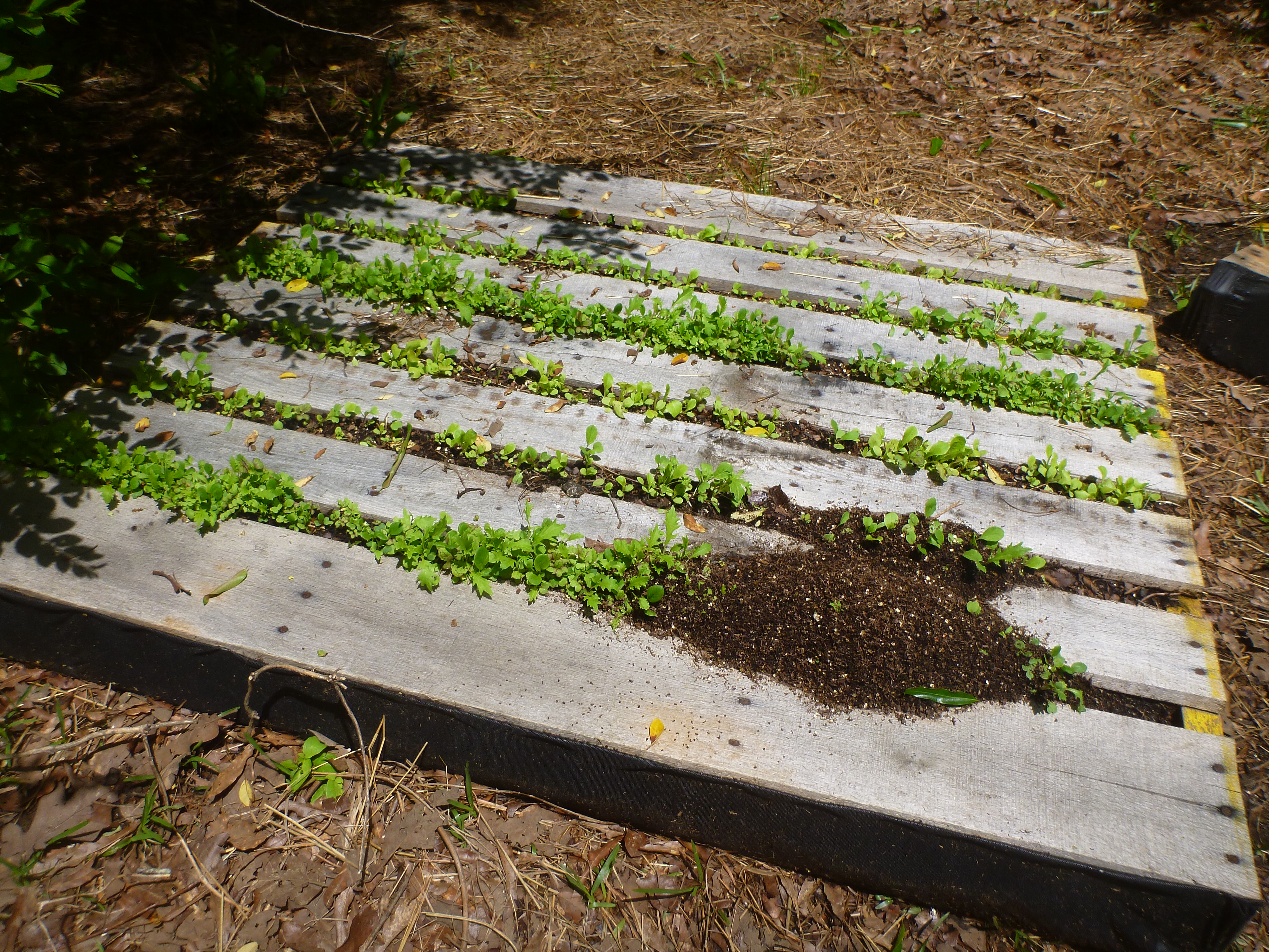 Monday afternoon I ate a salad of baby greens from the pallet for the first time – and managed not to disturb the fire ants as I wielded the scissors to harvest them.  Today I enjoyed the sweet bliss of a few wee peas, squeezed from their pods into my mouth and eaten raw.  There are more seeds to plant, much more to learn and work to be done but tasting the fruits of my early endeavors is nourishing, not only to my body but to my dream of being able to feed myself.  Baby greens, baby steps.  Poco a poco.  And I find that I’m enjoying the process thus far – which is a revelation in itself.