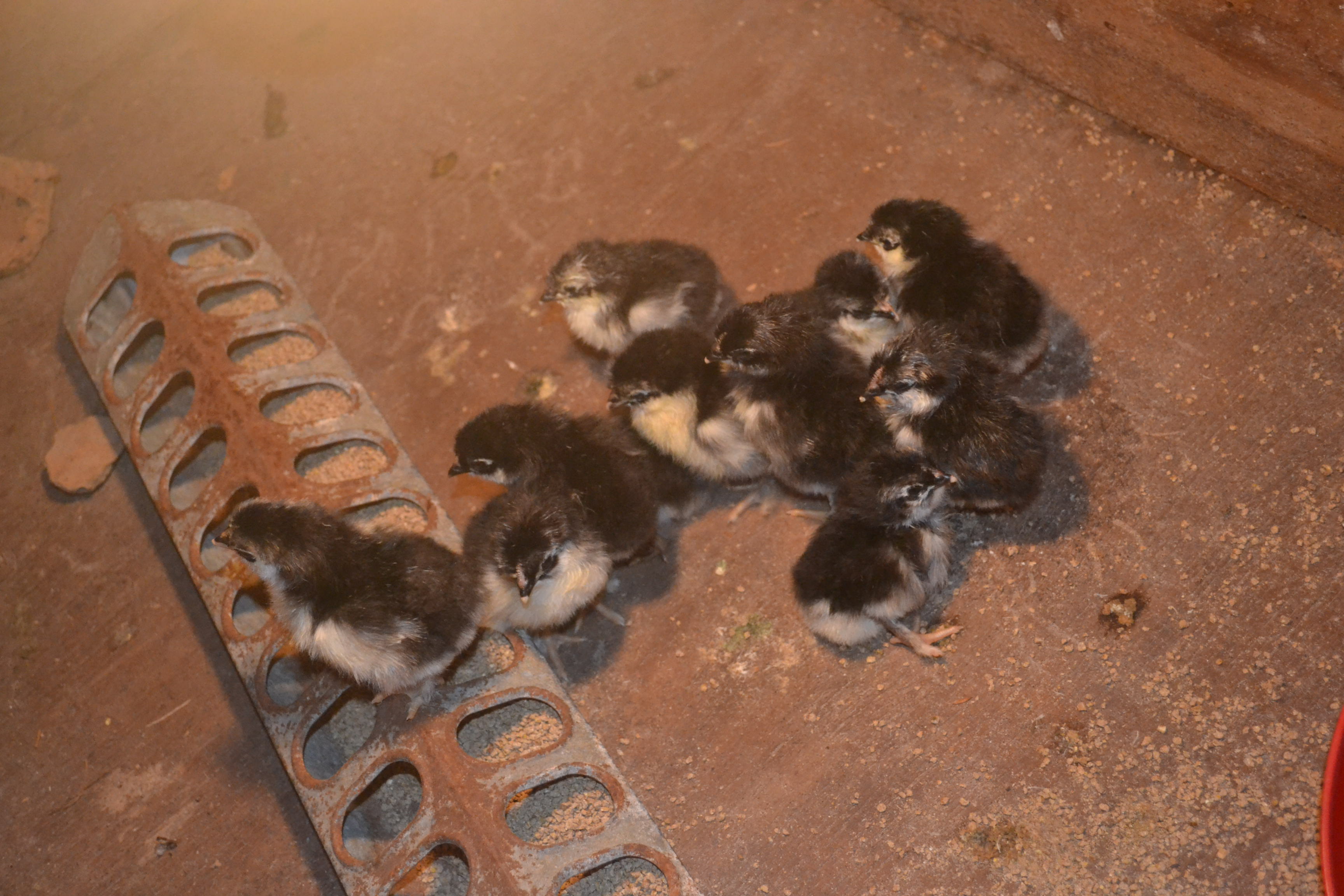 Unbeknownst to me, Saint George hadn’t forgotten my desire for these particular birds.  At the appropriate season he started quietly looking for eggs.  And an incubator.  And here’s where the story gets good.  Because when he drove over to pick up a dozen Black Copper French Marans eggs, at a very fair price, practically next door in Vardaman, who did he meet?  The local source for French Marans turned out to be Frances Simmons, who has been following Free Range Rodeo via facebook since I rode through Mississippi two years ago.  How amazing is that!?!  And now, thanks to Frances and Saint George, there are 11 recently hatched balls of fluff and another dozen or so due to hatch out on my birthday and by the time I see them they’ll be feathered out and looking like chickens!  Happy Day!